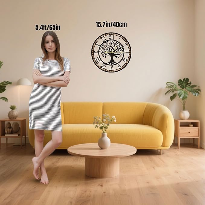 Wall Clocks for Living Room Decor - Tree of Life Big Wall Clock, Quiet and No Ticking Suitable for Wall Decor, Living Room Decoration, Kitchen Decoration (16 in)