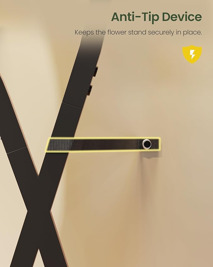 - Sturdy Construction: Made of premium particleboard and a metal frame, the plant display stand is built to last, with floor protectors for added security. The included anti-tip device ensures it stays steady and safe