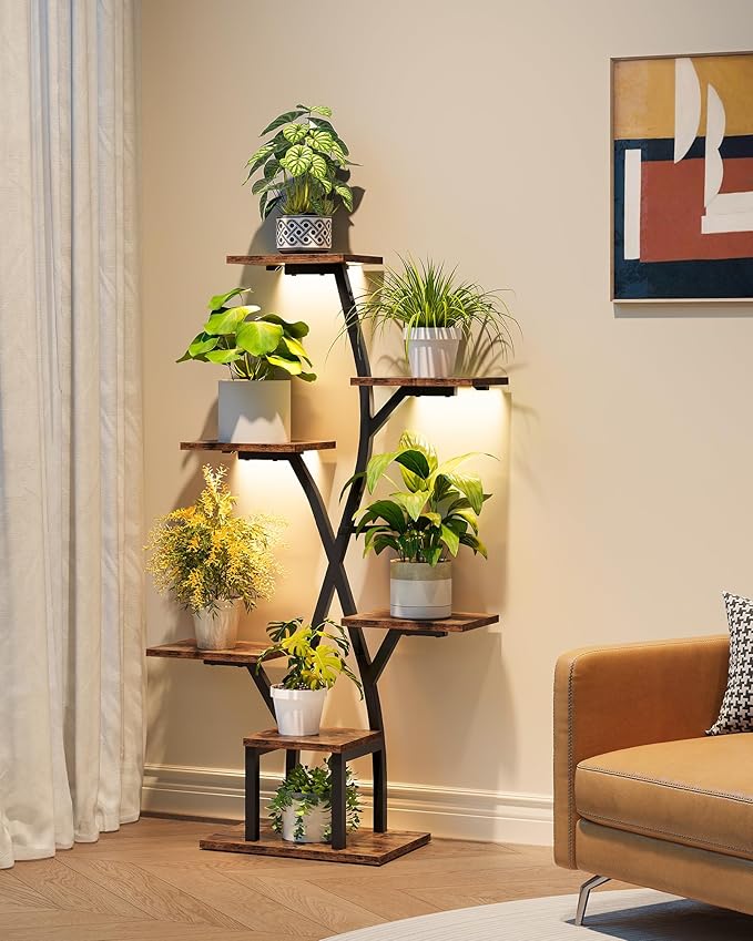 - 46.5” Plant Stand: The 7-tier plant rack with ample spacing between shelves provides plenty of room for plant growth. The bottom shelf is perfect for small pots or gardening tools. Its vertical design fits well in corners