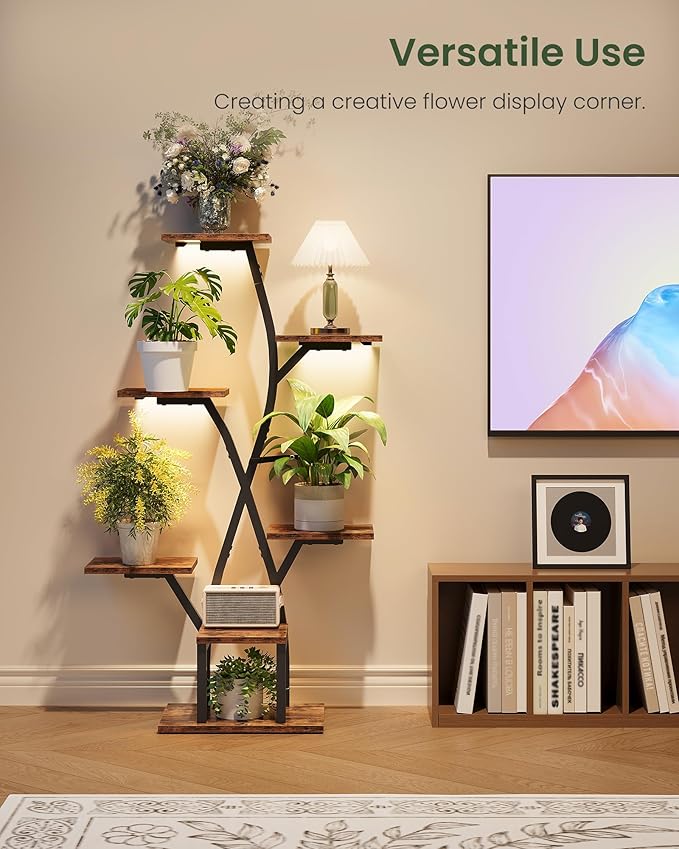 Plant Stand Indoor with Grow Light, 7-Tier Flower Plant Holder, 46.5” Tall Corner Plant Display Rack, Dimmable Grow Light with Timer, for Living Room, Balcony, Patio, Rustic Brown and Black TCJ40DBF