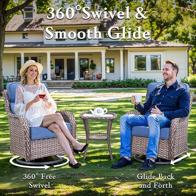 - 【Swivel Base Design】Experience fabulous comfort with our swivel rokcer patio chairs. The innovative swivel-glide mechanism allows 360 degree rotation paired with gentle rocking motion. Whether enjoying morning coffee or hosting guests, these swivel patio chairs ensures maximum comfort through leisure time.
