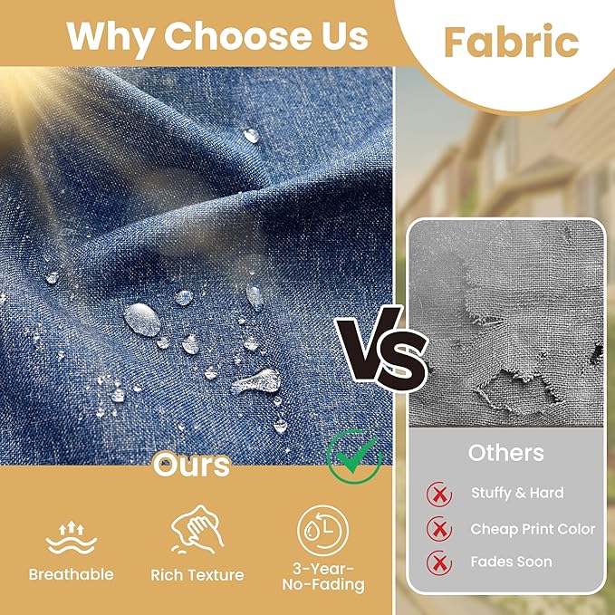 - Texture Woven Fabric: Selected yarn dyed woven fabric, the yarns are dyed and treated before woven into fabric for out door fading resistant and water repellent. Looks and touches with high-end woven texture. No more worry about getting cheaply made thin print fabric.Daily use 3 years no fading. Detachable & washable