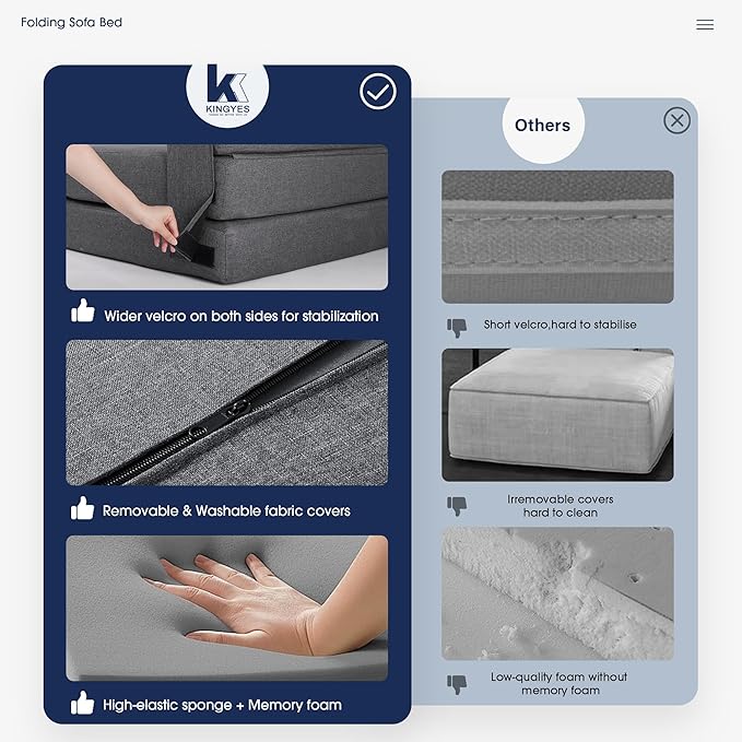 - FULLY ADJUSTABLE RECLINE WITH SECURE SUPPORT: Customize your relaxation instantly with the foldable sofa bed! The unique magic-secured velcro backrest effortlessly detaches and re-attaches to create multiple recline positions or lies flat. Each position provides firm, reliable back supportdesigned to comfortably cradle you.