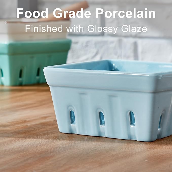 - Stylish & Functional Berry Holder - This elegant ceramic berry basket blends beauty and utility. Use it as a fruit container to store, rinse, and serve berries, strawberry, grape, or cherry with ease and charm