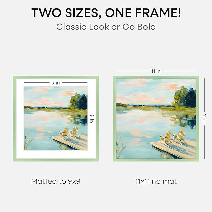 - SAGE GREEN, PERFECTLY BALANCED. Neither flashy nor flat, this color brings a designer’s eye to everyday framing—timeless and calm.