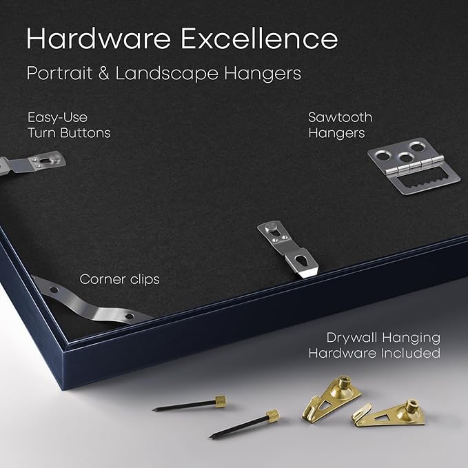Homeforia 20x24 Frame Navy Blue, High End Metal 20x24 Poster Frames with Mat 16x20 inch Photo, 20 x 24 Navy Blue Picture Frame Matted to 16 by 20 Print, 24x20 Frame, Tempered Glass, Wall Kit, Set of 1