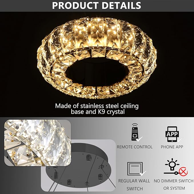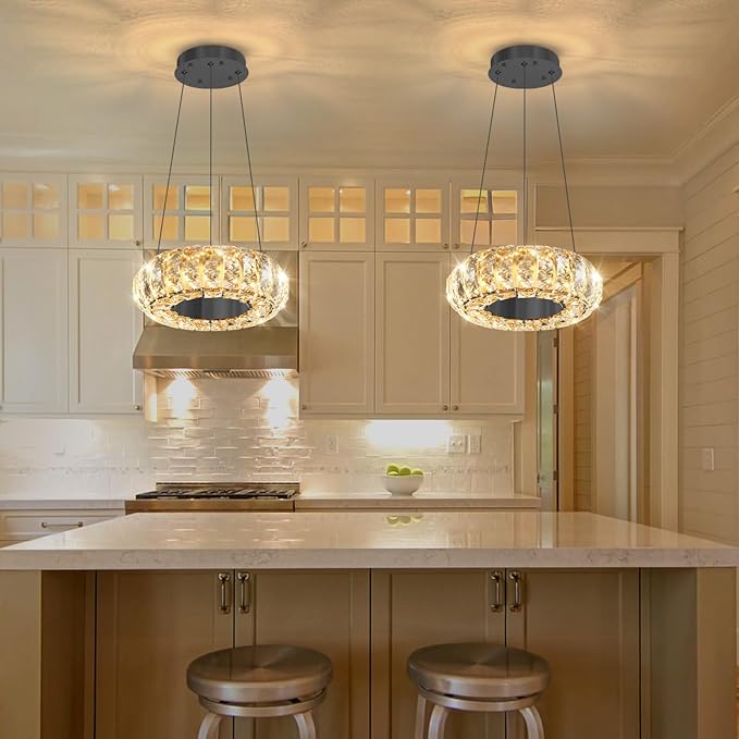 - Widely Used Hanging Light - All assembly is complete, it is easy to install on Flat / Sloped / Vault ceilings etc. Crystal illuminate enchanting light for the bedroom, kitchen, island, dining room, hallway, or any other indoor rooms