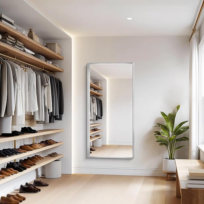 - Sleek & Sturdy Aluminum Alloy Frame This elegant silver bathroom mirror features a lightweight yet durable aluminum alloy frame, designed to resist deformation, chipping, and corrosion. The slim metallic profile adds a modern touch, elevating your space with a luxurious finish. Perfect as a wall-mounted or hanging mirror, it combines strength, style, and longevity