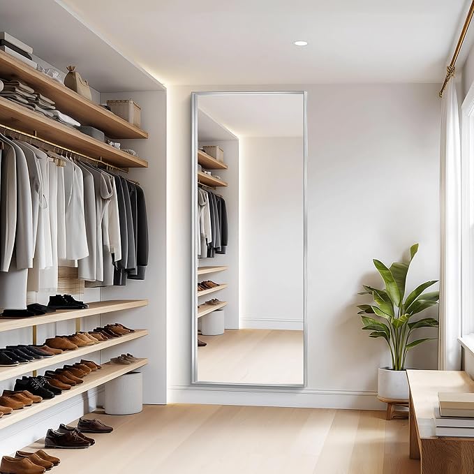 - Sleek & Sturdy Aluminum Alloy Frame This elegant silver bathroom mirror features a lightweight yet durable aluminum alloy frame, designed to resist deformation, chipping, and corrosion. The slim metallic profile adds a modern touch, elevating your space with a luxurious finish. Perfect as a wall-mounted or hanging mirror, it combines strength, style, and longevity