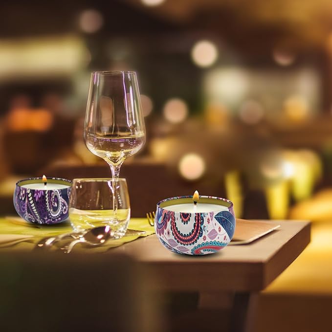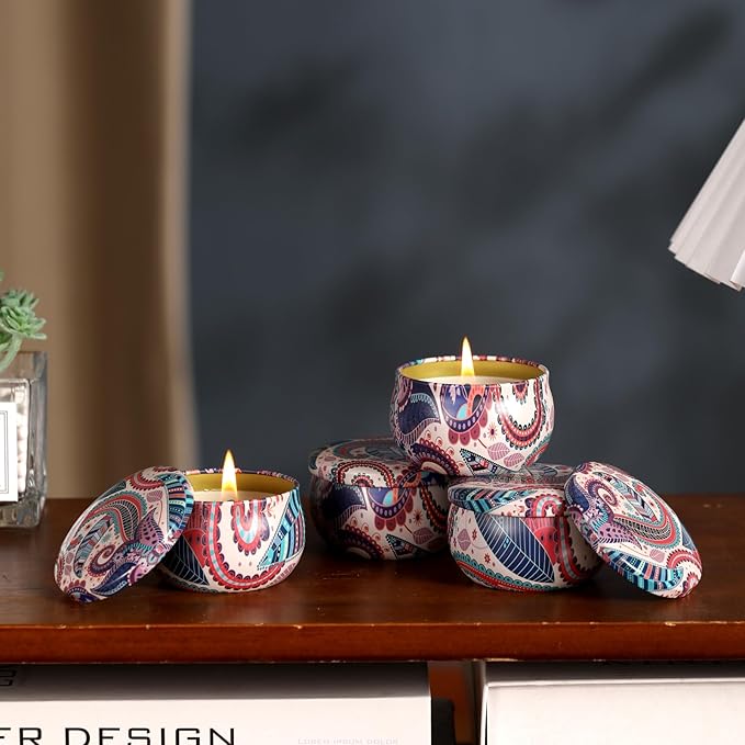 - LONG LASTING TIME: Scented Candles for Home, each jar candle 2.5 oz burning time approaches 15-20h. Portable Tin candles create comfortable aromatic bliss for you and your family.