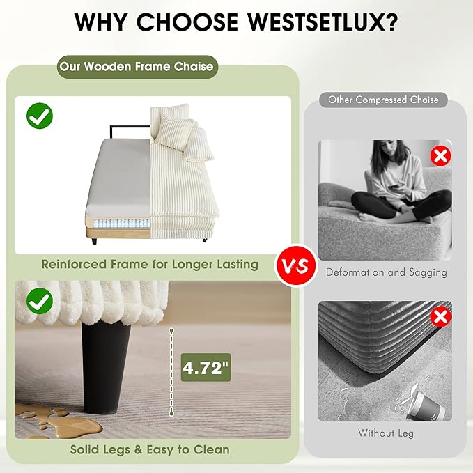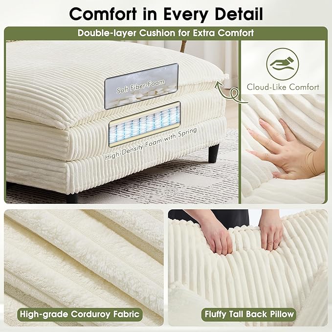 - 【Fits Any Room】With its clean lines and cozy finish, this oversized corduroy chaise sofa adds both warmth and style to any space—whether in your living room, bedroom, office, or apartment.