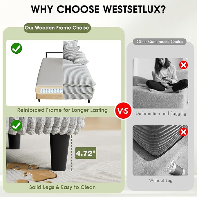 - 【Fits Any Room】With its clean lines and cozy finish, this oversized corduroy chaise sofa adds both warmth and style to any space—whether in your living room, bedroom, office, or apartment.