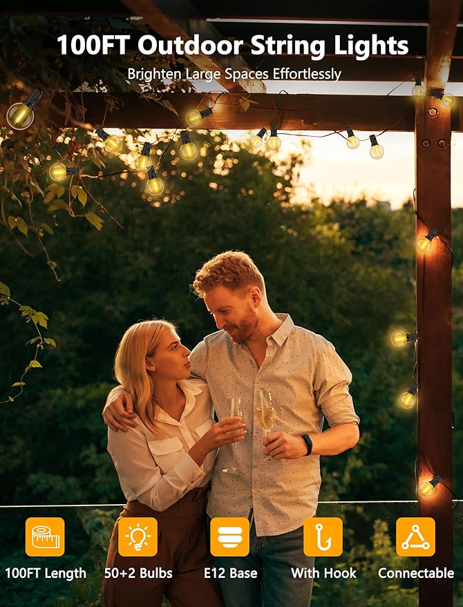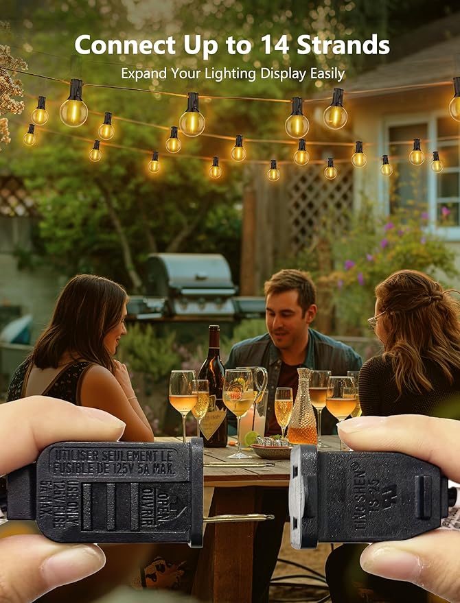 - 【100FT Connectable LED String Lights】The Kivonfa outdoor string lights set includes 50 G40 LED bulbs & 2 spare bulbs, perfect for illuminating your entire yard. The patio lights feature a hassle-free plug-and-play design that lets you connect up to 14 strands with total ease! Install like a pro in just 10 minutes, no tangled wires to hassle with.