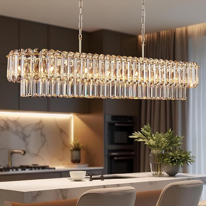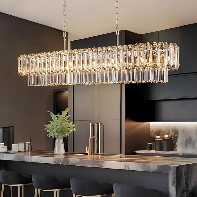 - 【Upgraded K9 Crystal and Metal Frame】The K9 crystal with a unique cutting technique refracts the brilliance of diamonds, distributing light evenly and shining brightly. Metal frame is very sturdy and durable, free from shaking, which can ensure the stability and safety of the modern chandelier for dining room. Moreover, The chandeliers doesn't fade and can be used for a long time.