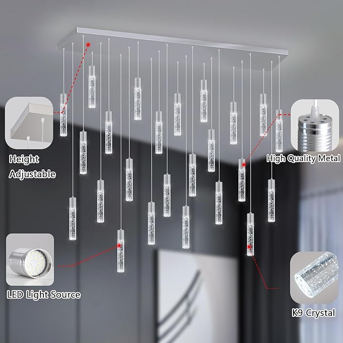- 【K9 bubble crystal pendants】High quality aluminum lampshade with chrome finished rectangular base. Provide bright lighting and modern design looking for your kitchen, island, dining room, living room, bedroom, hallway, bar, over dining table