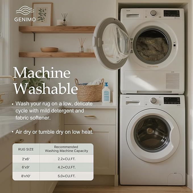 - Machine Washable: Our boho area rug is designed for convenience and fits seamlessly into any lifestyle. Machine wash with cold water on gentle cycle (not to add bleach), air dry or dry on air-only cycle without heat. For daily upkeep, use a vacuum cleaner or a quick wipe. Its VERY THIN design allows for easy removal of pet hair and other debris.