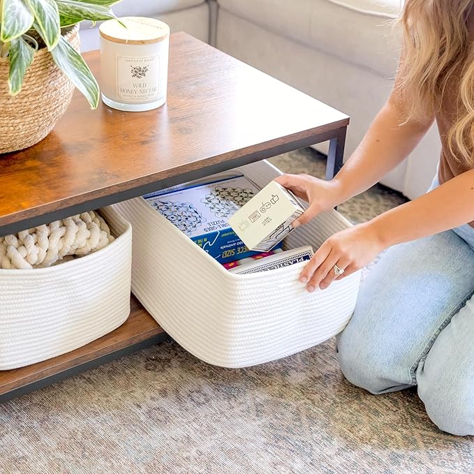 NaturalCozy Storage Baskets 16.8”x13”x7.6” Cotton Rope Woven Baskets for Organizing 3-Pack | Toy Storage Bins | Basket for Shelves, Laundry, Blanket, Clothes, Closet, Kitchen, Bathroom, Gifts