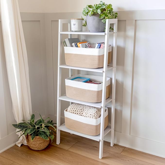 NaturalCozy Storage Baskets 16.8”x13”x7.6” Cotton Rope Woven Baskets for Organizing 3-Pack | Toy Storage Bins | Basket for Shelves, Laundry, Blanket, Clothes, Closet, Kitchen, Bathroom, Gifts