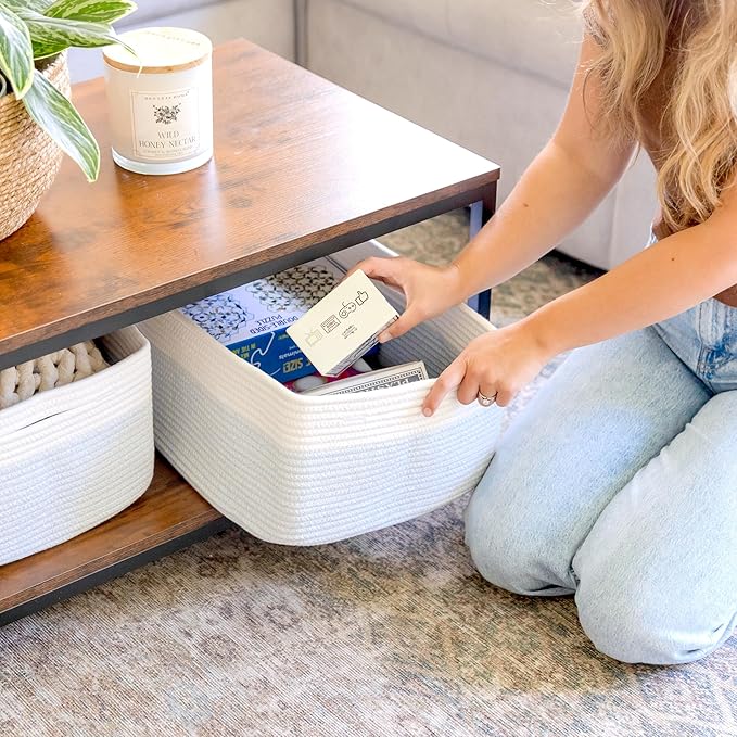 NaturalCozy Storage Baskets 16.8”x13”x7.6” Cotton Rope Woven Baskets for Organizing 3-Pack | Toy Storage Bins | Basket for Shelves, Laundry, Blanket, Clothes, Closet, Kitchen, Bathroom, Gifts
