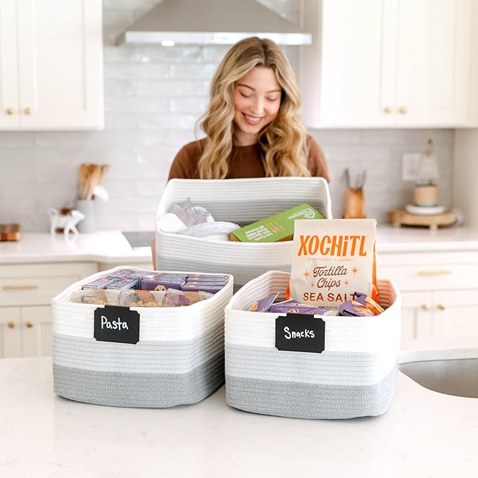 NaturalCozy Storage Baskets 16.8”x13”x7.6” Cotton Rope Woven Baskets for Organizing 3-Pack | Toy Storage Bins | Basket for Shelves, Laundry, Blanket, Clothes, Closet, Kitchen, Bathroom, Gifts