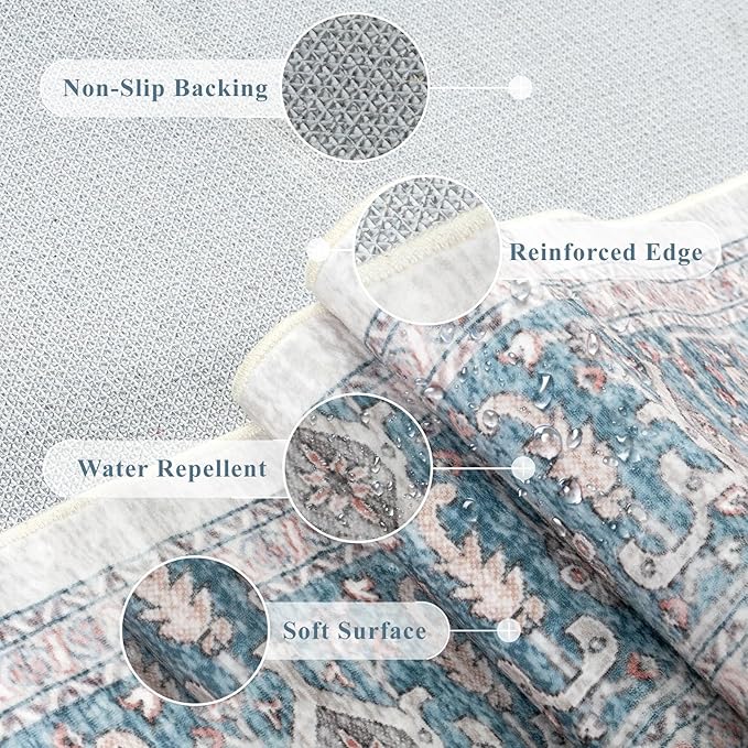 - [Non-slip Rubber Backed Rug]: The indoor rug for living area is one of the solutions to the trip hazards in your home, and while it may not provide a lot of cushioning, the rubber material offers excellent grip, bohemian bedroom rug protects your floors when used in high traffic areas