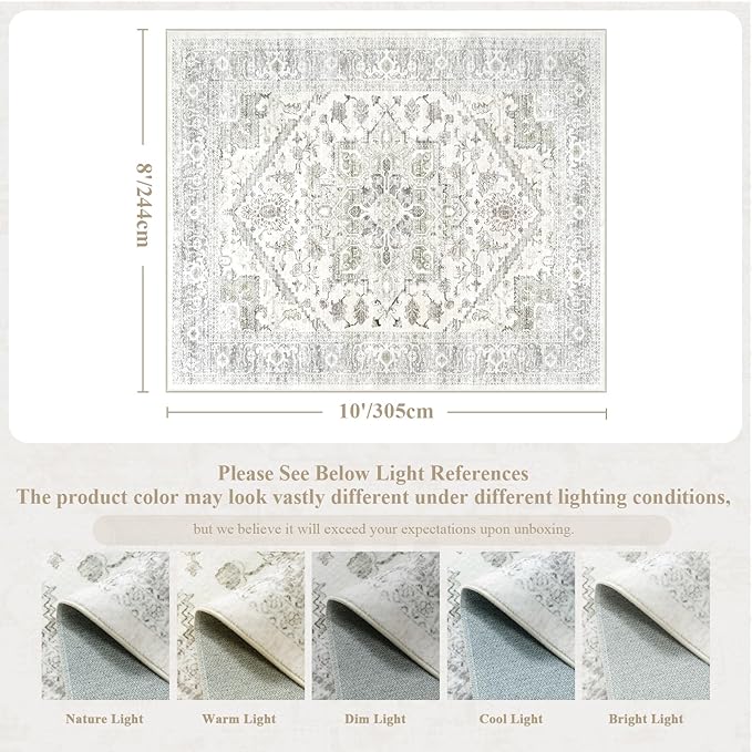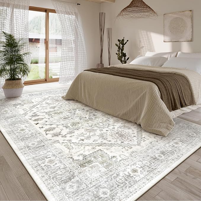 - [Foldable Soft Rug]: Washable rug 8x10 folds without leaving creases for easy seasonal storage.Chic boho and retro large area rug featuring gorgeous patterns printed on soft & cozy short pile for a velvety touch. A gentle mix of beige and brown rug exudes tranquility and inspires quiet meditation