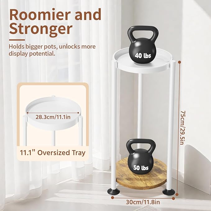 - 【Large Trays for Bigger Plants】The upgraded 11.1-inch wider trays offer more space than most on the market, giving you plenty of space for larger planters. Each tray can hold over 40 pounds, making it a perfect fit for those hefty cement pots that other planter stands just can't handle.