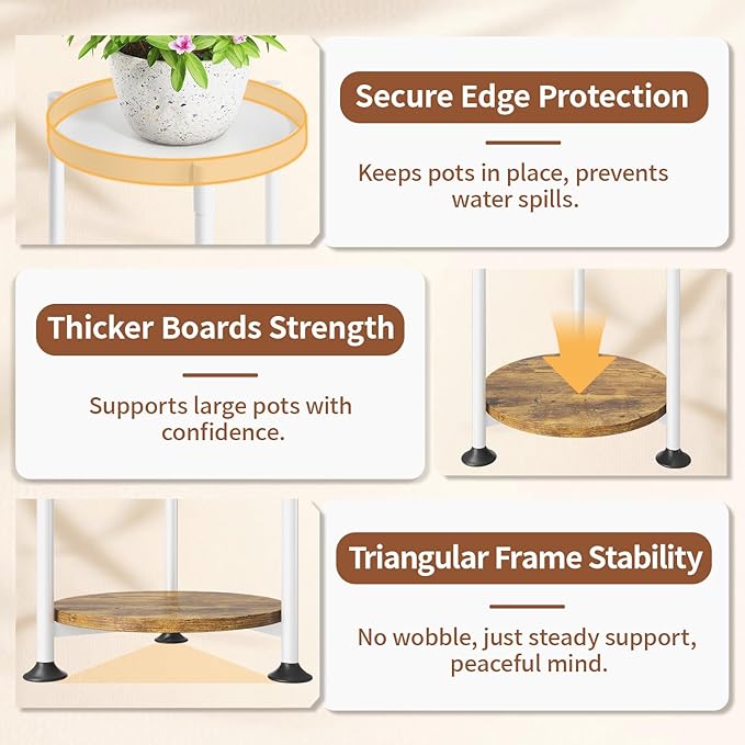 - 【Adjustable Feet for Any Surface】 No need to worry about uneven floors! The sturdy plant stand indoor large plants features three adjustable feet that keep it perfectly balanced, whether it’s on carpet, tile, or hardwood—plus, they also protect your floors from scratches.