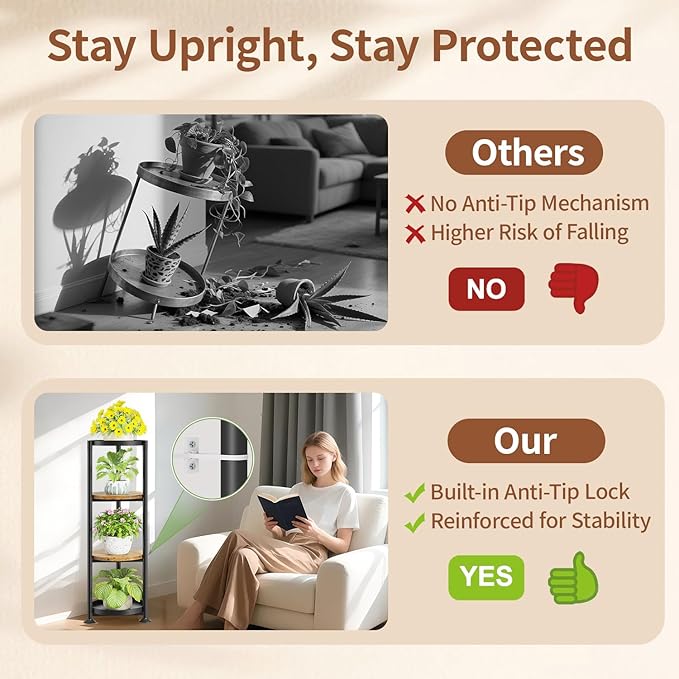 - 【5-Minute Easy Assembly】Forget about complicated instructions! The multi plant stand indoor is ready to go in just 5 minutes with only one screw—no tools or assembly headaches involved. Simply set it up and start enjoying your new tall plant stands in no time.