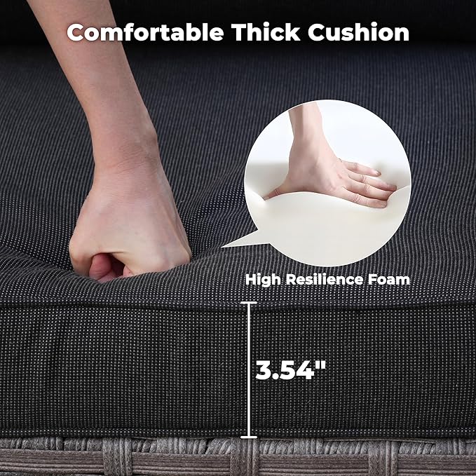 - Upgraded Widen Armrests: The outdoor sofa feature with a 7.68-inch extra wide armrests designed to relax your arms, twice the width of a normal armrest, wide enough to hold a laptop.