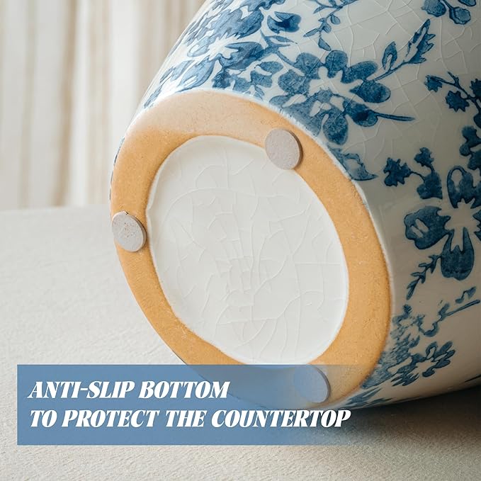 - 【Vintage Vase】Inspired by traditional Chinese art, this blue and white vase features a classic crackled glaze that radiates rustic elegance. This stunning work effortlessly complements modern farmhouse, rustic, or contemporary interiors, elevating your home aesthetics.
