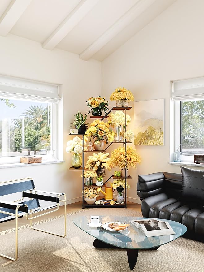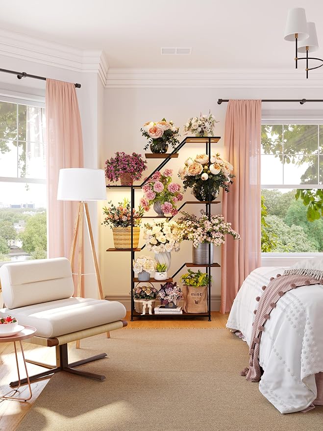 • Tall Multi-Tier Vertical Rack: With seven vertical levels, this plant stand transforms narrow corners into lush indoor gardens. It’s ideal for apartments, bedrooms, or living rooms where floor space is limited but greenery is welcome.