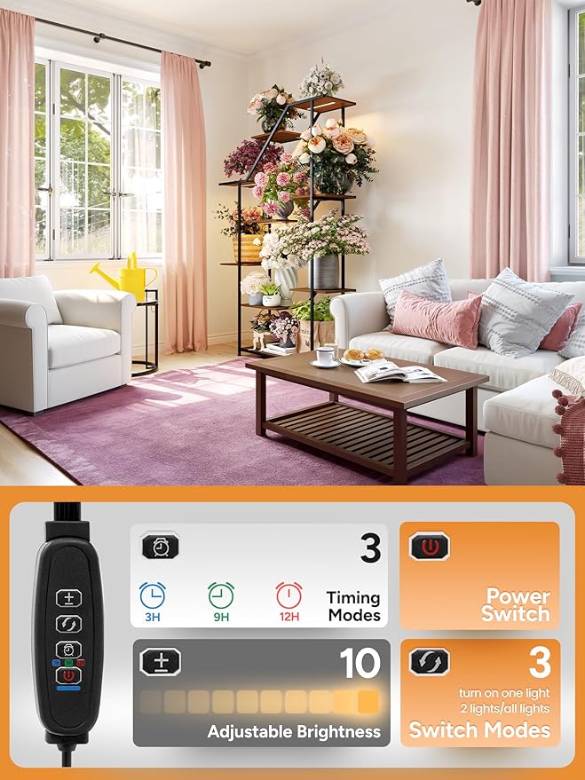 • Full Spectrum Grow Lights with Timer: Each tier features built-in full-spectrum LED grow lights and a timer, helping your indoor herbs, succulents, and vegetables grow strong—even in dark rooms or winter months.
