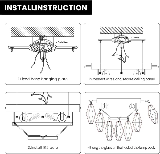- Compatible Dimmable Bulb: E12 bulb base, compatible with LED bulbs, up to 60W. (Note: 4 warm white bulbs are given as gifts. If you want to adjust the brightness and color temperature, you need to purchase a dimmer switch and dimmer bulbs. When installing the lampshade, be sure to wear gloves to protect the lampshade to avoid scratches and fingerprints on the lampshade.