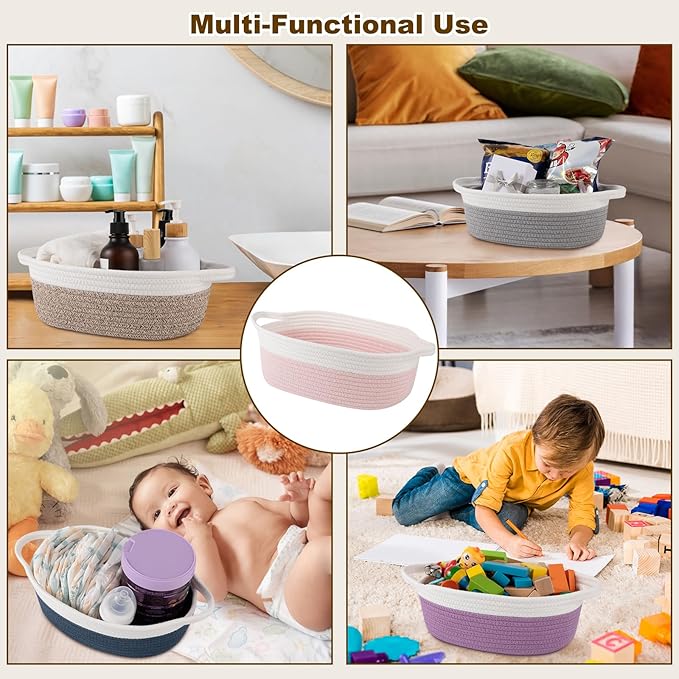 - Multi-Purpose Use: This rope basket is suitable for all kinds of rooms, it's a perfect cute basket for keys, wallet, nappies, cosmetics and other items, it can add a stylish touch to living room, bedroom, bathroom, children's room and dressing table, you can use it as a baby basket, shelf basket, Valentine's Day basket, Easter basket, Mother's Day basket, Christmas and all kinds of holiday gift baskets