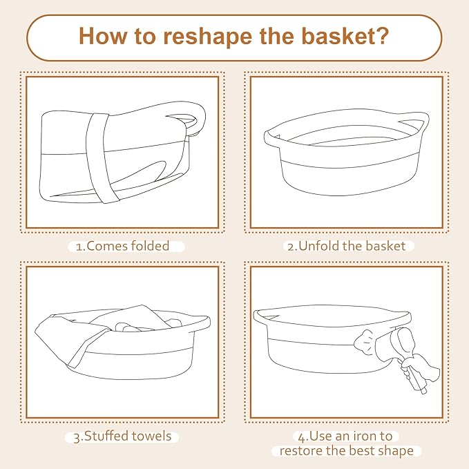 - Foldable and Easy to Clean: This storage basket can be folded and stored when not in use to save space, it is machine washable for easy cleaning, the basket is shipped folded for transport so you will need to place towels or use an iron for it to regain its shape