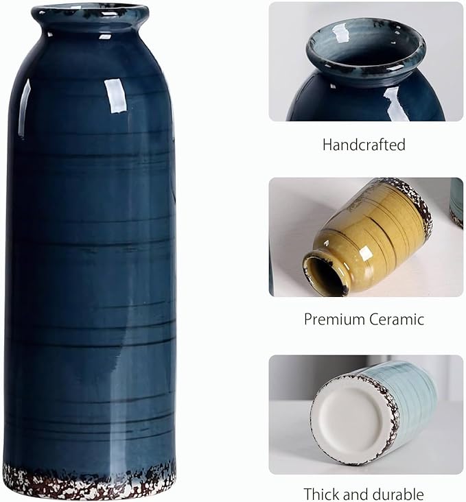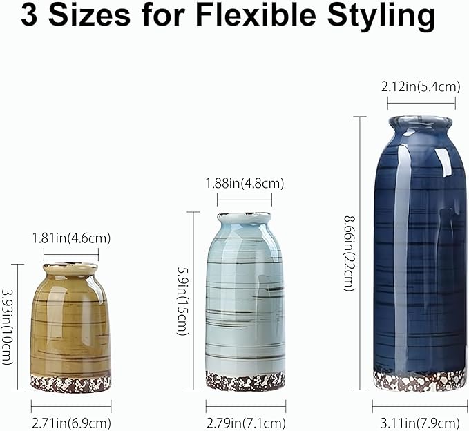 - [Timeless Farmhouse Style, Modern Color Palette] Enhance your home with this set of 3 ceramic vases in a sophisticated. The rustic matte glaze and classic silhouette effortlessly complement farmhouse, modern, and boho interiors—making any space feel warm and inviting.