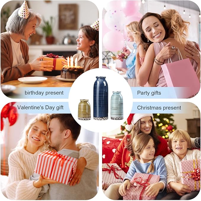 - [Versatile Home Decor, Multiple Display Options] This decorative vase have three sizes (8.66", 5.9", 3.93" tall) allow for creative arrangements on mantels, shelves, coffee tables, entryways, or as a centerpiece. Mix and match with dried flowers, pampas grass, or eucalyptus for a personalized touch.