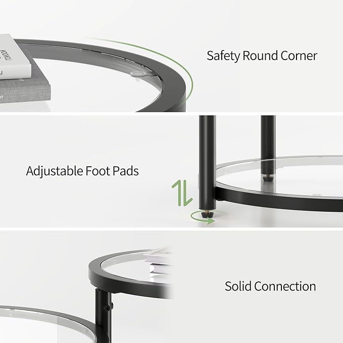 - 【Tough Glass & Strong Frame】Enjoy a sleek circle coffee table with tempered glass tops—heat, scratch, and shatter-resistant, plus easy to clean. The thickened metal frame of the coffee table round stays wobble‑free and firmly stable, built to support heavy loads with ease. Crafted to serve you day after day.