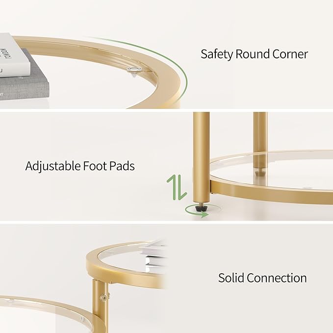 - 【Tough Glass & Strong Frame】Enjoy a sleek circle coffee table with tempered glass tops—heat, scratch, and shatter-resistant, plus easy to clean. The thickened metal frame of the coffee table round stays wobble‑free and firmly stable, built to support heavy loads with ease. Crafted to serve you day after day.