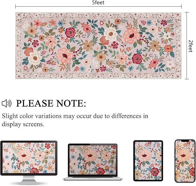 - Vintage Floral Style: Enhance your bedroom decor with our area rug adorned with colorful floral motifs. Its vintage design adds charm to any space, creating a cozy atmosphere that complements a variety of interior styles.