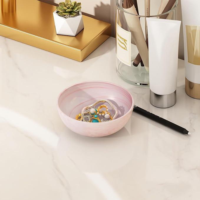 Small Decorative Bowl, Marble-patterned Ceramic Bowl, Modern Home Decor Centerpiece 6.1 Inches Key Bowl for Entry Table, Pink