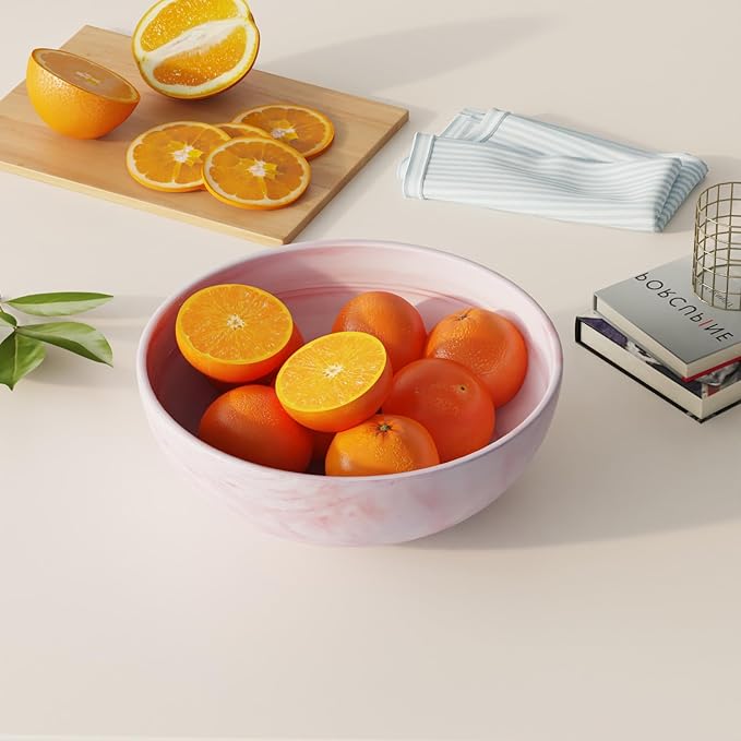 Large Decorative Fruit Bowl, Marble-patterned Ceramic Bowl for Coffee Table Entryway Kitchen Modern Home Decor Centerpiece 9.5 Inches, Pink