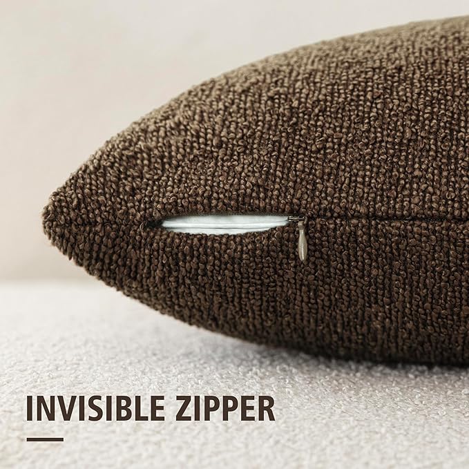 Foindtower Set of 2, Decorative Textured Boucle Throw Pillow Covers Accent Solid Pillow Cases Neutral Soft Couch Cushion Case for Chair Sofa Bedroom Living Room Home Decor 24x24Inch Chocolate