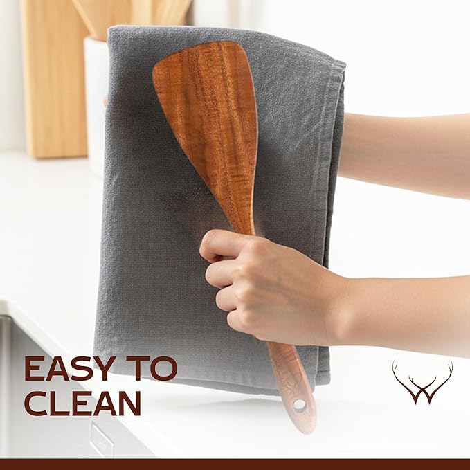 - ✔️ Cookware friendly — Wooden spatula for cooking and wooden spoons protect non-stick surfaces without scratches.