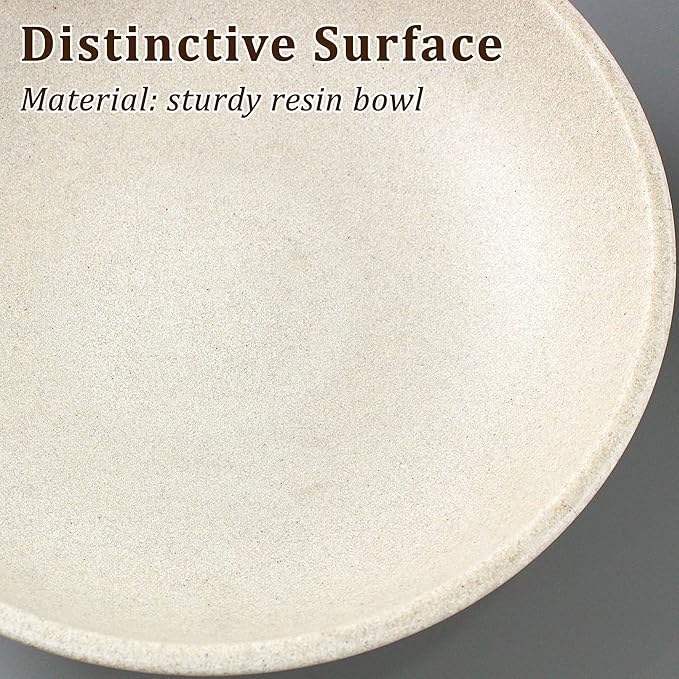 - 【Stylish and Elegant】The raised base elevates the bowl, giving it a polished, refined look. The clean lines and beige resin construction paired with the wood-look base add a touch of sophistication to counters and tables.