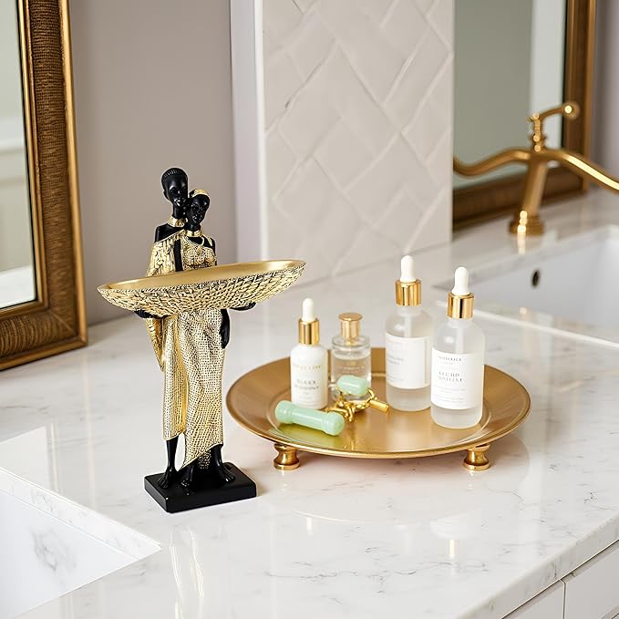 - 【Functional Tray Meets Art Decor】Not just a statue – the large round tray can be used to hold candies, keys, jewelry, coins, or incense. Ideal for entryway, coffee table, or dresser use.