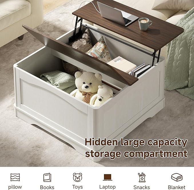 - [Hidden Storage Space] The lift-top opens to reveal hidden storage, ideal for organizing remotes, books, and blankets. A coffee table with hidden storage keeps your living room clutter-free and stylish.