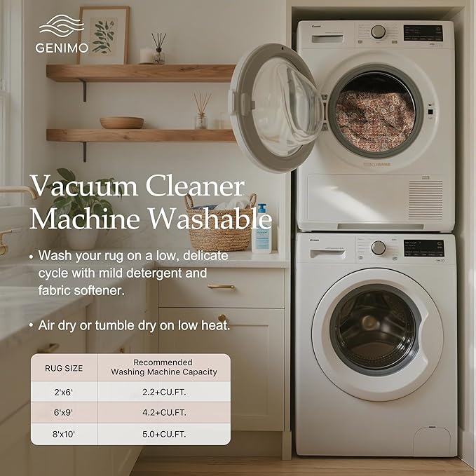 - Machine Washable: Our boho area rug is designed for convenience and fits seamlessly into any lifestyle. Machine wash with cold water on gentle cycle (not to add bleach), air dry or dry on air-only cycle without heat. For daily upkeep, use a vacuum cleaner or a quick wipe. Its VERY THIN design allows for easy removal of pet hair and other debris.