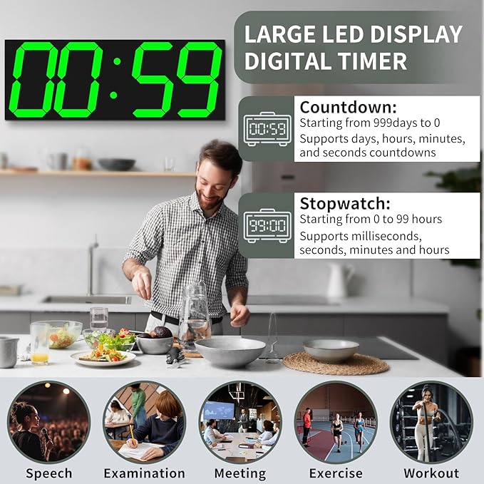 - Large Digits and Easy to Read:This LED multifunctional digital wall clock features a bright, high-contrast 5.9-inch digital display and an 18.7-inch screen for clear readability. Its design combines practicality with modern aesthetics, making it an ideal choice for homes, offices, and public spaces.